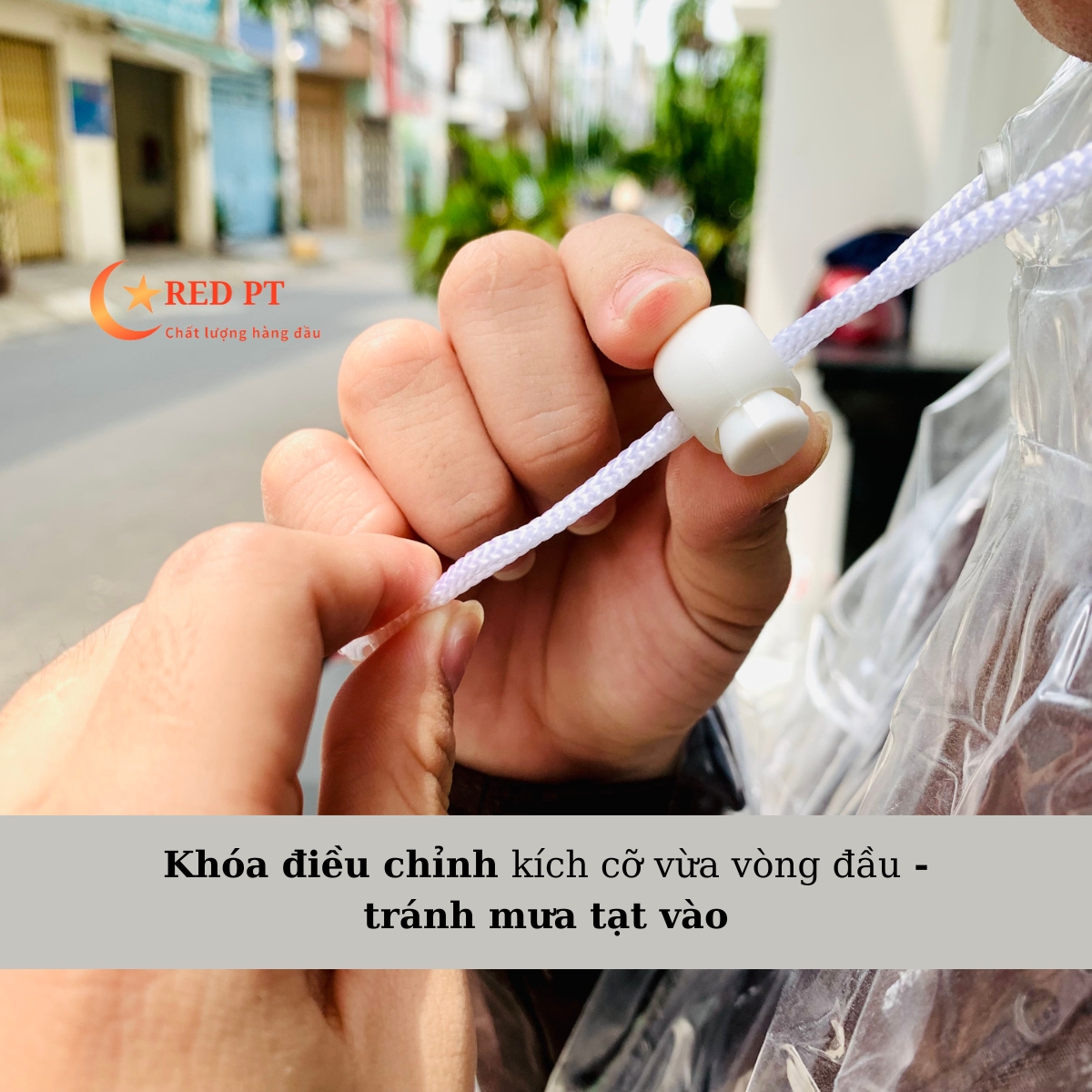 – Có dây khóa điều chỉnh vòng đầu tránh mưa tạt.