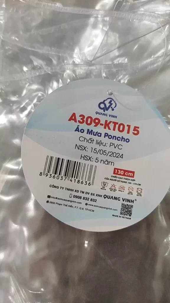 – Xuất xứ: Áo mưa trong suốt được sản xuất tại Việt Nam.